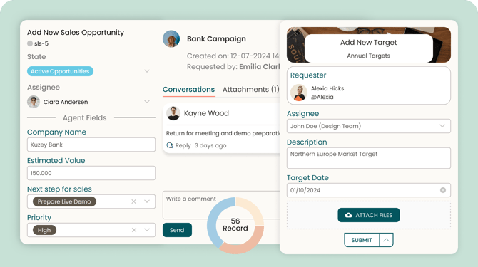 Teams can quickly create records in Stoneity by collecting data through forms. They can assign these records to individuals or groups and signal those to follow up on the work.
