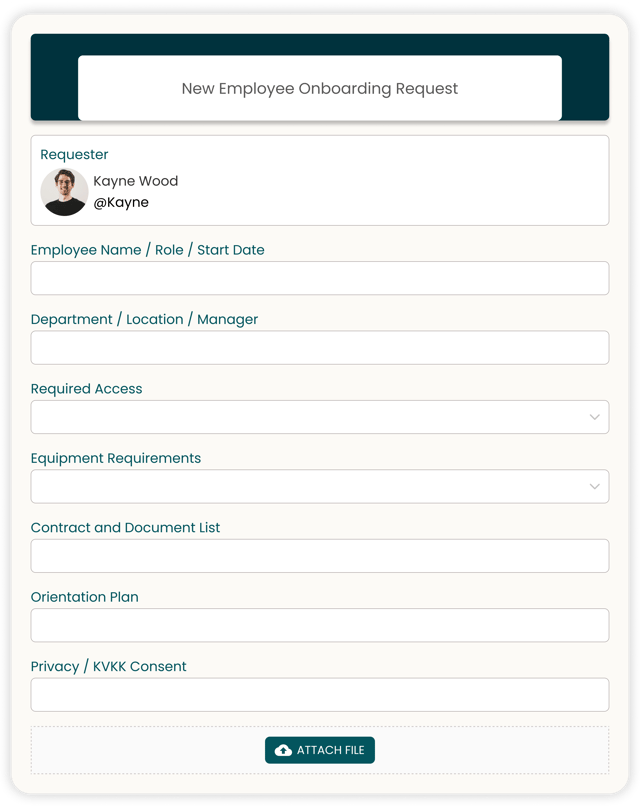 HR service delivery aims to manage employees’ HR-related needs through a service catalog. Following ITIL 4 principles of “Focus on value” and “Optimize and automate”, the goal is to improve employee experience and reduce operational workload. With Stoneity, processes like onboarding/offboarding, leave, document requests, benefits, and policy approvals are managed through standardized forms and workflows.
