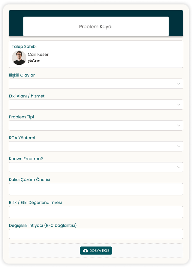 Problem Yönetimi, olayların arkasındaki kök nedeni (Root Cause) bulmayı ve tekrarını önlemeyi hedefler. ITIL 4 kapsamında bu pratik, hizmet stabilitesini artırır ve uzun vadede olay hacmini düşürür. Stoneity, olay–problem ilişkilendirme, RCA kayıtları, “Known Error” yönetimi ve çözüm/iyileştirme aksiyonlarının uçtan uca takibi için merkezi bir yapı sunar.