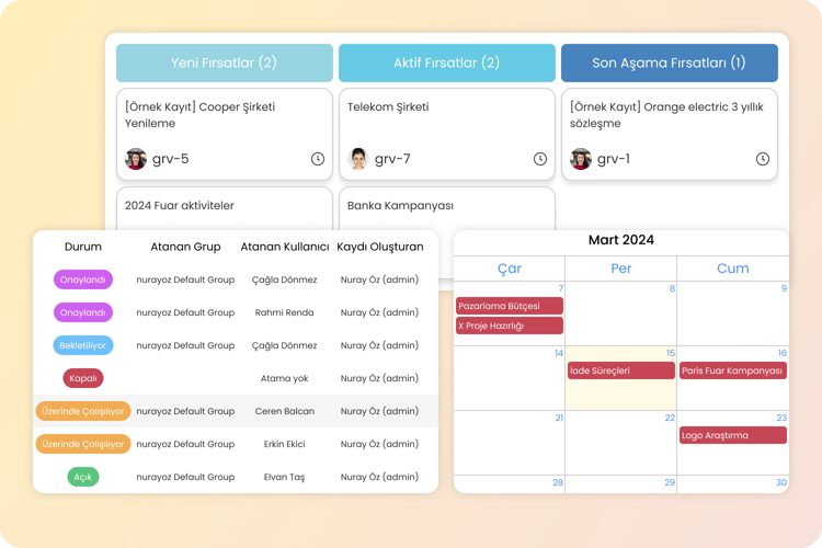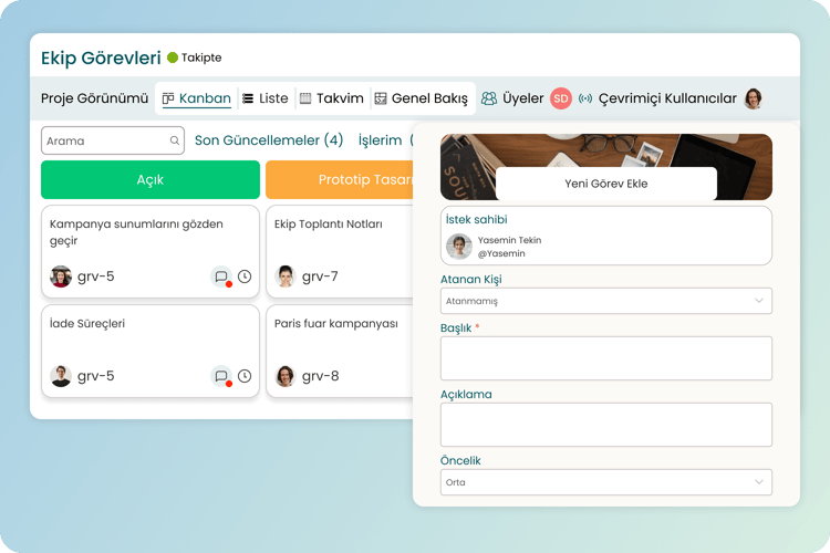 İşlerinizi Kanban görünümünde, liste görünümünde veya takvim görünümünde takip ederek iş akışınızı daha verimli bir şekilde yönetin.