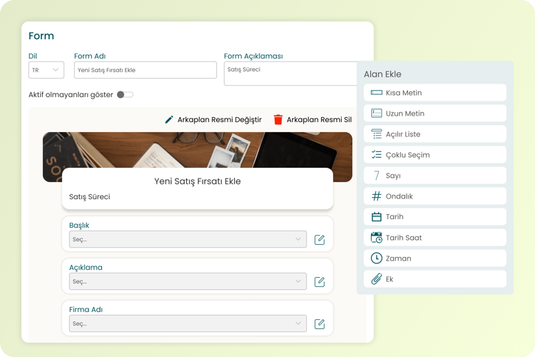 Yeni görevler oluşturmak ve veri girişi yapmak için formları kullanın. Formları, dinamik alanlarla çeşitlendirerek oluşturabilirsiniz.