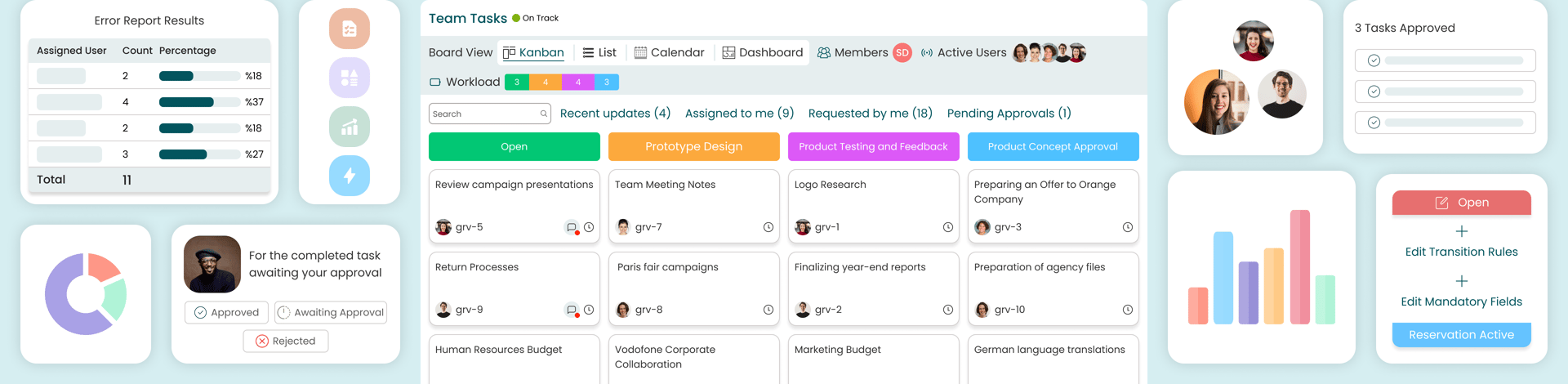 Manage your workflow more efficiently by tracking your tasks in Kanban view, list view or calendar view.