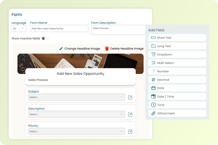 Use forms to create tasks. You can create different forms by using dynamic fields.